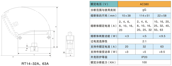 用途與使用范圍RT14系列有填料封閉管式圓形帽熔斷器(以下簡(jiǎn)稱熔斷器)適用于交流50Hz,額定電壓為380V,額定電流至63A的工業(yè)電氣裝置的配電設(shè)備中作線路過載和短路保護(hù)之用。
